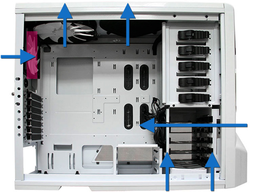 ケースもNZXT のPHANTOM フルタワーケースには変わりありませんが、膨張色の白に変更することにしました。そこで、久しぶりに組むにあたってのポイントとなる水冷のラジエーターの吸気・排気についていろいろ調べてみて、今回の私の構成ではまず吸気でやってみたいと思います。
