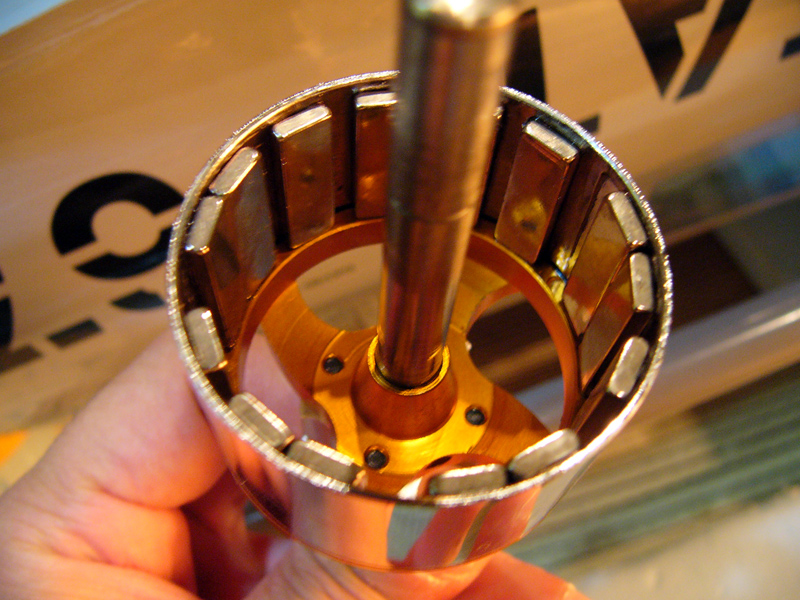 また、以前ハイペリオンの3025-08でも経験していますので25クラス以上の機体に取り付ける大き目のモーターを新たに購入した場合は、まずステーターを外して磁石とカンの間に瞬間接着剤を流し込んでおいたほうが無難といえます。