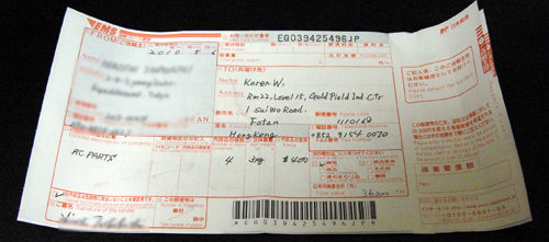 この送信のレスポンスで大体は、まずブツを返品してくれとの返信が来ますので郵便局に行ってEMSの用紙を貰ってきて中を記入します。