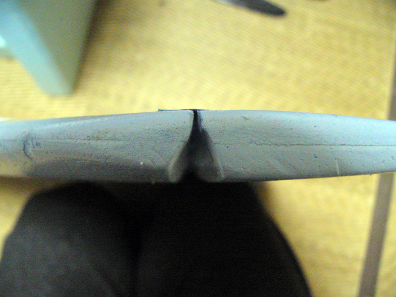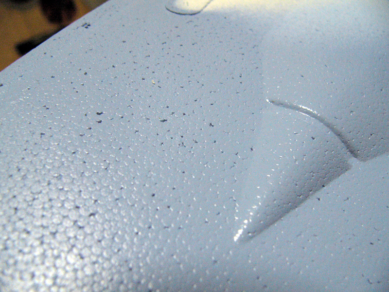 やはり、全体にわたって発泡独特の気泡が相当空いています。このような部分は全て軽めのパテ+ジェッソを使って滑らかな下地を作ります。