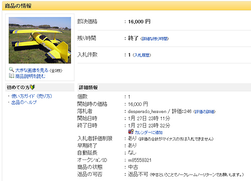 突然ですが、先ほど電動ラジコン飛行機のハイペリオンPITTS-PYTHON-70 をヤフオクに出品しました。だって、置き場所が限界になっていたし飛ばすたびに組み立てるのも面倒になっちゃいまして・・・(^^;)